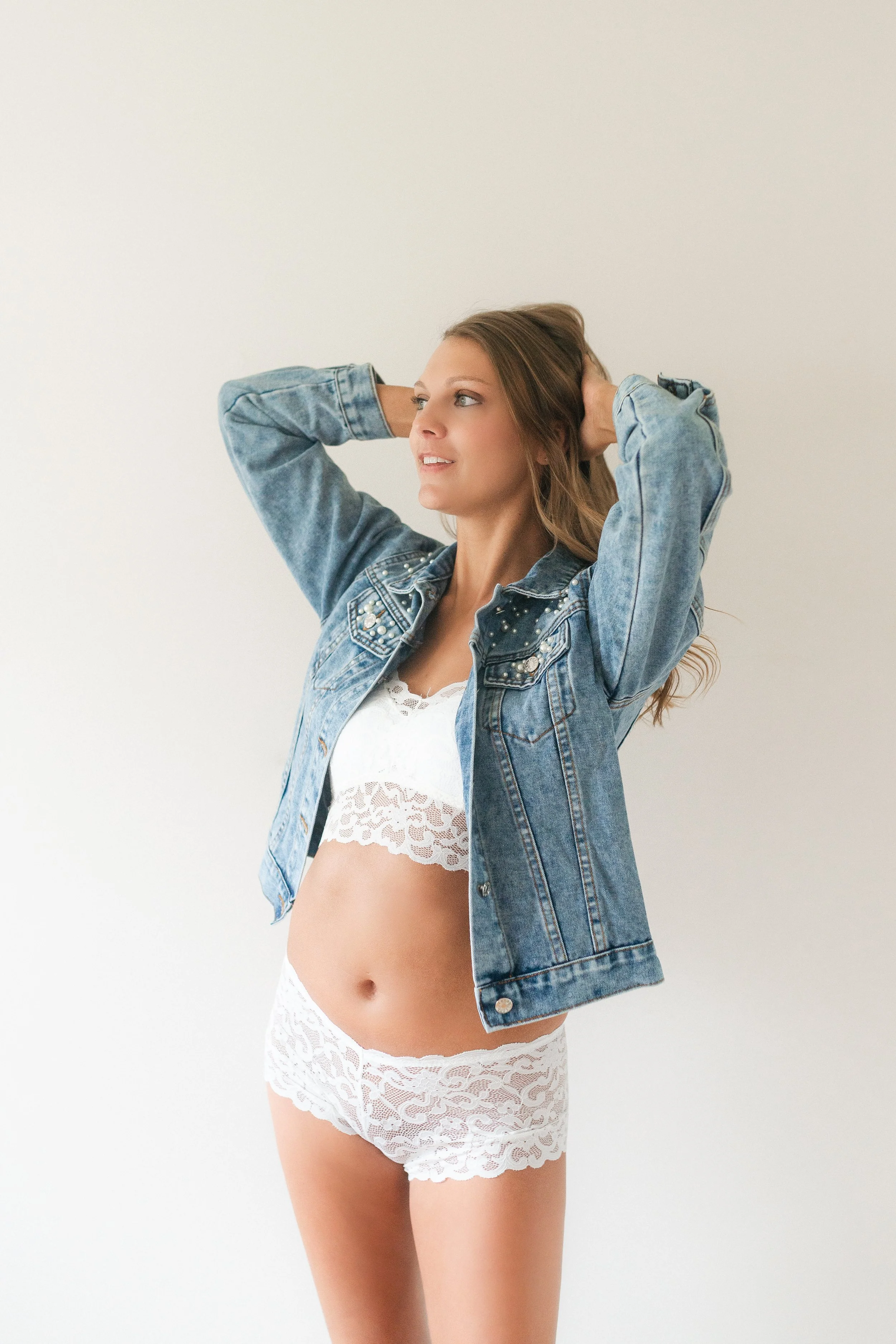 My boudoir experience is fun and carefree, making my clients feel and look beautiful and empowered. I always turn on fun music, select natural posing and follow their comfort levels to ensure a great experience. During studio boudoir sessions, ladies are invited to come relax in my in-home studio space! The sessions are very simplistic with soft white walls, bamboo floors and minimal furnishings.